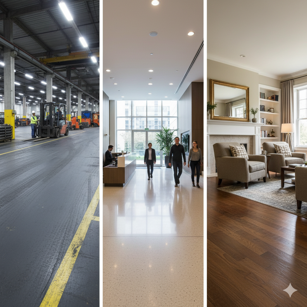 How does industrial flooring differ from commercial or residential flooring?